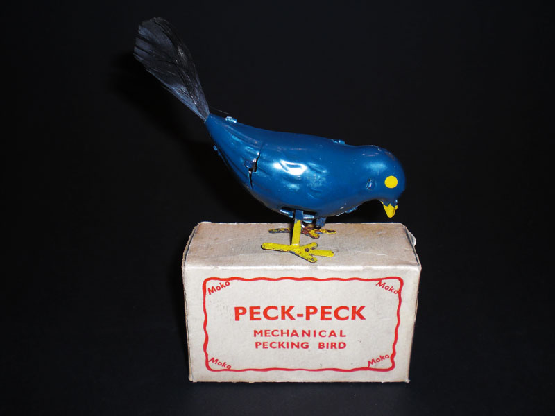 Dark blue Pecking Bird Box with red letter