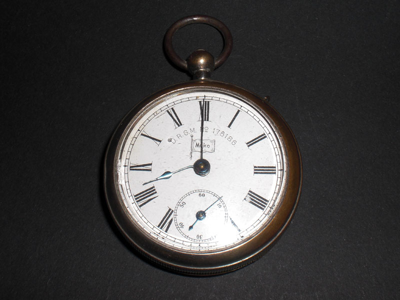 vintage (1920's) Pocket watch stylized for a tobacco container, produced by : ,,MOKO'' D.R.G.M. No 195169 - Bavaria. Diameter : 49 mm. Thickness : 19 mm. Any question, welcome. See my other items, thank you !!!