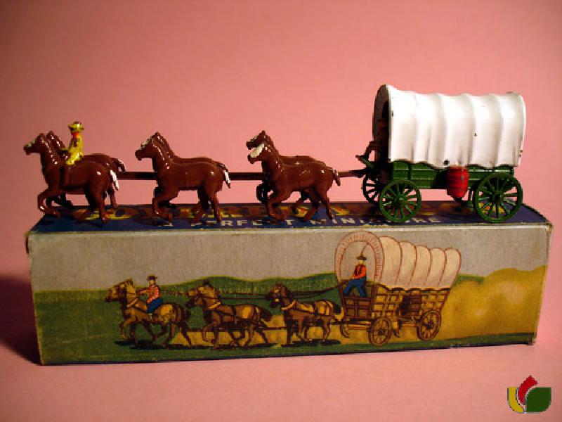 Covered Wagon with Barrel dark brown Horses