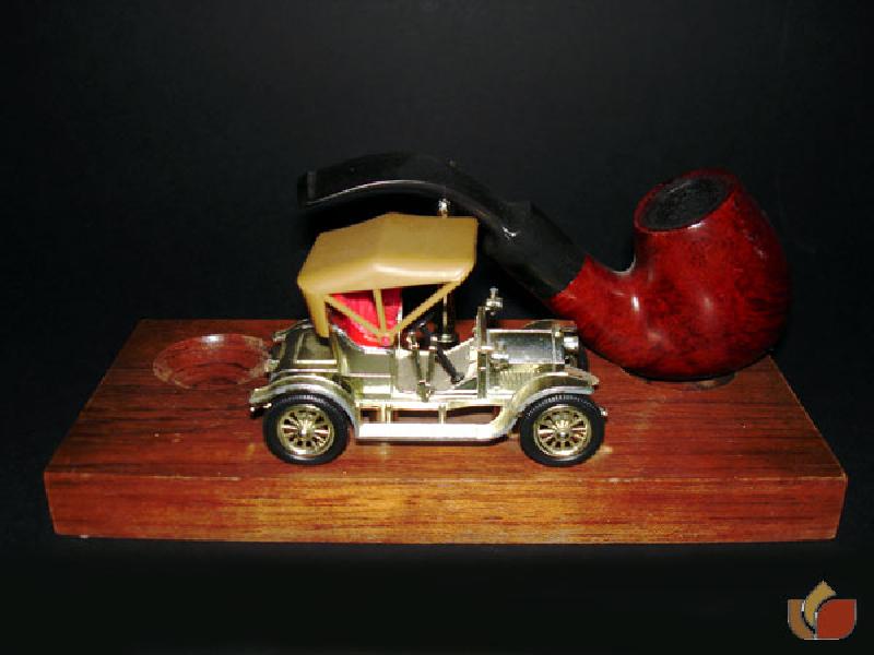 Wood double pipe rack with golden 1909 Opel